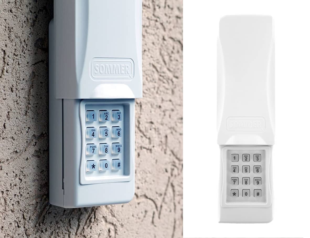 Beim ENTRApin von Sommer handelt es sich um einen 1-Befehl Funcode-Taster, der in einem grauen Gehäuse ist. Mit einem festgelegten Code können Garagentore, Haustüren oder Hoftore geöffnet werden. Das Gerät wird an der Wand neben der zu öffnenden Tür angebracht und gestattet Personen Zutritt, nachdem eine vorher programmierte Zahlenkombination als Code eingegeben wurde. Das bequeme Türöffnungssystem arbeitet auf der Funkfrequenz FM 868,8 MHz. Die individuelle Codierung muss mindestens 4 und darf maximal 8 Ziffern enthalten. Für das batteriebetriebene Zugangssystem ist kein Stromanschluss erforderlich.