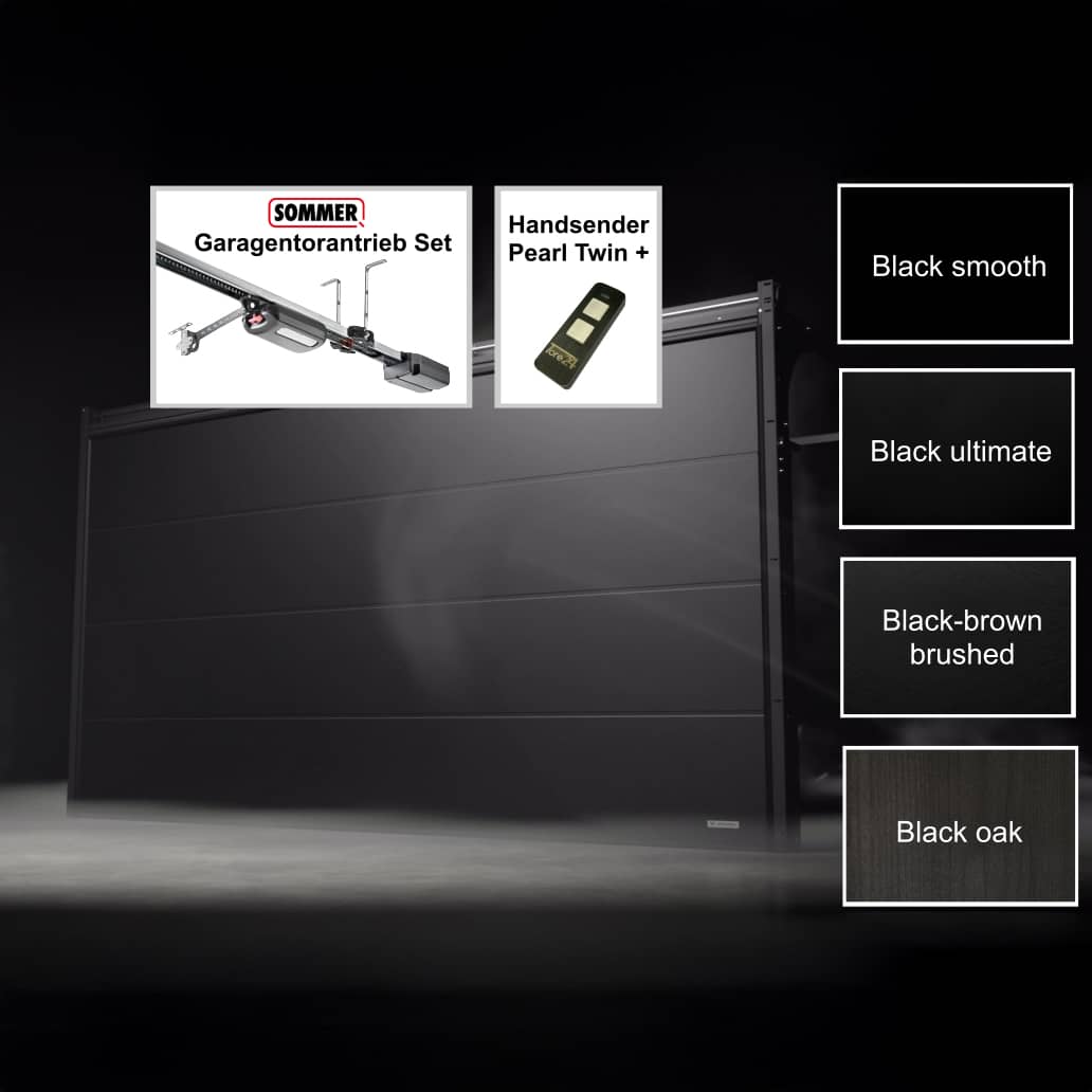 BLACK is BACK – das elegante Tor sticht durch seine vier verschiedenen Schwarzlackierungen graziös heraus und verleiht Ihrer Garage das gewisse Etwas. Der Wärmedurchgangskoeffizient (U-Wert) beträgt 1,07 (W/m²xK).