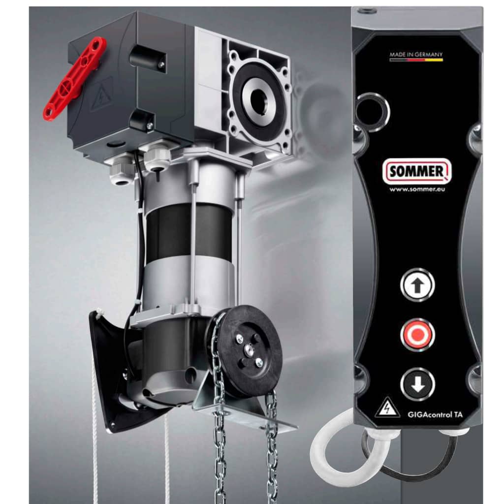 - Wellenantrieb GIGA Automatik: Automatische Öffnung und Schließung des Tores. Bedienung auch per Funk möglich (Handsender nicht im Set enthalten). Der Antrieb hat zusätzlich eine integrierte Lichtschranke.